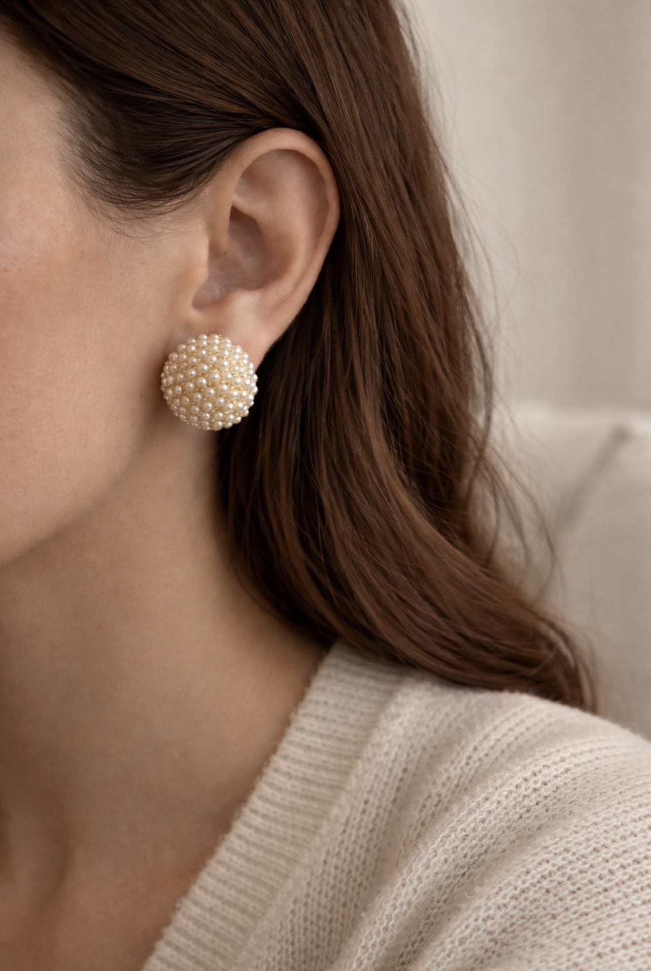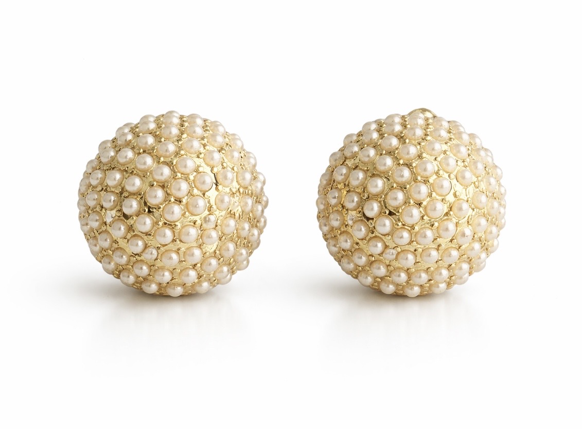 Zarcillos en forma de domo, bañados en oro con mini perlas.